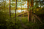 Sovrum: Ett lugnt och harmoniskt sovrum med gröna väggar och ett golv av hög kvalitet. Rummet är helt insynsskyddat och bjuder på en vacker utsikt mot tallar och annan grönska, med gott om plats för både en rymlig dubbelsäng och byrå. Här finns även en praktisk och rymlig garderob med skjutdörrar.