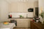 Köket är stilrent och välplanerat med ljusa luckor, ljusgrå bänkskiva , full maskinell utrustning: diskmaskin, kyl/frys, spishäll, ugn, mikro och fläkt.