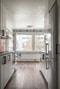 Intill med ingång från hallen ligger det praktiska köket med vita skåpluckor och mörk bänkskiva. Utrustning i form av spis, ugn, fläkt, diskmaskin samt kombinerad kyl/frys. Gott om arbetsyta och förvaringsmöjligheter. Längst in finns gott om plats för matbord intill det härliga fönsterpartiet.