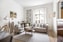 Vardagsrummet vetter mot gatan och bjuder på stora, spröjsade fönster som fyller rummet med ett härligt ljus. I fil ligger sällskapsrummet och det ena sovrummet, vilket skapar en klassisk och social planlösning med många möjligheter. Köket nås via en charmig, välbevarad serveringsgång – en detalj som förstärker bostadens historiska karaktär. Här finns dessutom en generös balkong i soligt söderläge mot den lugna innergården. Det andra sovrummet är beläget intill köket.