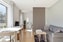Badrummet är modernt och helkaklat med stilrena materialval. Här finns dusch samt bekvämligheter som underlättar vardagen, såsom tvättmöjligheter.