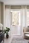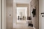 Välkomnande hall med stilfull panelvägg som skapar ett fint första intryck och erbjuder praktiska avhängningsmöjligheter. Den ljusa enstavsparketten och de beige väggarna sätter tonen för bostadens genomgående, harmoniska materialval. Härifrån nås samtliga rum samt god förvaring i två inbyggda garderober.