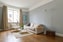 Ljust och trivsamt vardagsrum med generöst ljusinsläpp. Vackert fiskbensparkett samt djup fönsternisch skapar en luftig och tidstypisk känsla. Fönstret är utrustat med klassiska spanjoletter. Smart förvaring med integrerat sängskåp, arbetsplats samt plats för soffgrupp och övrigt möblemang.