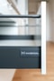 Köket kommer från Marbodal och har vita släta luckor med rostfria handtag, inbyggd diskmaskin och stilfullt vitt kakel. Under bänkskåpet finns spotlights som ger bra med ljus över arbetsbänken. Köket är utrustat med vitvaror från Siemens och består av induktionshäll, inbyggnadsugn, diskmaskin, mikrovågsugn i väggskåp samt kyl/frys.