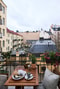 Härligt omsluten balkong med utsikt över föreningens fina innergård och dess gårdshus. Balkongen vetter åt sydväst och erbjuder sol från ca 13-18 under sommaren.