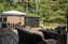 En stenlagd framsida med planteringar och härliga sittplatser.