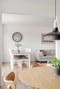 Ett vitt stilrent kök från Ikea. Ett ljust kök som erbjuder god förvaring samt bra med avlastningsytor. Bänkskivan i Ek matchar bra tillsammans med det vita kaklet ovanför. Köket är inrett med: Kyl / frys i fullhöjd, inbyggd ugn, spishäll, köksfläkt, integrerad diskmaskin samt diskho. köket hyser plats för matbord om minst 6 personer.