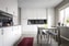 På entréplanet ligger ett rymligt och ljust kök, med vita luckor och svart, marmormönstrad bänkskiva som ger en elegant touch. Grå väggar ger en varm och tidlös inramning. Köket har en matplats för 6-8 personer, redo att hysa familj och vänner. Vidare finns ett stort vardagsrum med utgång till uterummet, som bjuder in till avkoppling och umgänge året runt. Ett genomgångsrum intill köket blir perfekt som matsal eller arbetsrum, och ett sovrum med vacker medaljongtapet och parkettgolv ger gott om plats för hushållet att sprida ut sig.