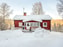Vinylgolv, pärlspont och trä på väggar, målad grovpanel i tak. Tillskott av elelement vid behov.