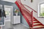 - Vardagsrum: Ljusmålade väggar med enhetligt vinylgolv på hela bottenvåningen.