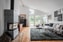 Vardagsrummet övergår sömlöst i det rymliga köket, som ligger längs med fönsterpartierna mot den större av uteplatserna. Här finns gott om arbetsytor, bra skåpförvaring och plats för ett stort matbord där du och dina gäster kan njuta av middagar med utsikt över trädgården.