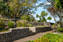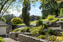 Sluttande tomt med vackra grusgångar och lummig grönska