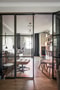 Glasvägg med dörr i sovrum på entréplan byggdes 2019 då huset även målades grått interiört