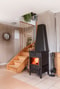 Huset är gemytligt och smakfullt inrett med stilrena färger och en genomtänkt rumsfördelning. På nedervåningen möts du av ett trevligt kök, ett sovrum och ett fräscht badrum. Vardagsrummet bjuder på en varm och inbjudande atmosfär med sin vattenmantlade kamin – perfekt för skön golvvärme, mysiga kvällar och effektivt för en billig driftskostnad av huset – och härifrån kliver du rakt ut på den syd och västvända altanen där ljuset från solnedgångarna bryts vackert mellan trädtopparna.
