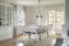 Sällskapsytorna flyter samman i en öppen planlösning mellan vardagsrum och matsal. Vardagsrummet har grönblå väggar, stavparkett och spröjsade fönster. Här ryms soffgruppen med lätthet. Matsalen, som också är ljus och generös, har dubbla glasdörrar mot uterummet och fönster i flera väderstreck – den perfekta platsen för långfrukostar och middagar i goda vänners lag.